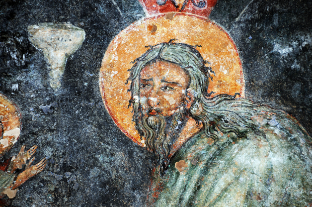 Negli ultimi due riquadri sono situati S. Giovanni e S. Vincenzo. Il primo ha l’aspetto di un anacoreta; infatti, è ricoperto da una corta tunica di pelo di cammello, mentre le gambe ed i piedi sono nudi. Con la mano sinistra regge il cartiglio ove di solito compare la scritta: Ecce Agnus Dei. S. Vincenzo è invece riconoscibile per i paramenti di diacono e regge con la mano sinistra un libro. L’aureola inquadra un capo dai capelli corti ed un viso senza barba. Il culto per S. Vincenzo di Saragozza, nella valle del Volturno, è precedente alla stessa creazione dell’abbazia che porta il suo nome. E’ il Chronicon Vulturnense ad attestarlo quando riferisce che Paldo, Tato e Taso nell’VIII secolo costruirono il complesso monastico sull’antico e abbandonato oratorio di S. Vincenzo in Samnii partibus super ripam Vulturni fluminis, ubi inicium sumit a mille fere passibus, in quo videlicet loco situm est oratorium martyris Christi Vincencii nomine dedicatum (16).