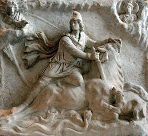 Per capire il significato simbolico del sole nascente ci può essere utile l’allegoria di Mitra che sgozza il toro che in genere viene rappresentato inserito tra il Caute ed il Cautopates.