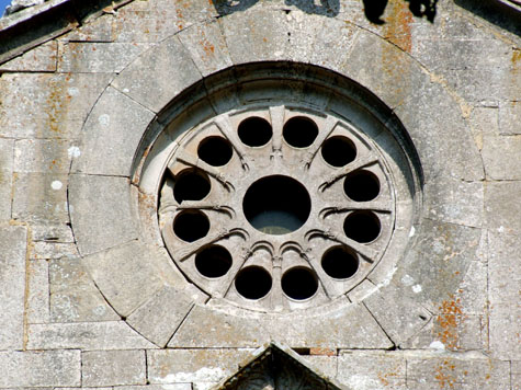 L’elemento originale di questo rosone sta nella particolare posizione degli archi di collegamento tra le colonne che convergono al centro e non sono posti sul perimetro esterno come accade sempre nelle monofore circolari, prescindendo dalla loro datazione.