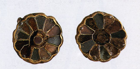 Le rosette fanno parte della produzione orafa longobarda sicuramente diffusa già nella seconda metà del VI secolo, come quelle ritrovate in una tomba di Modling in oro con vetro incastonato con la tecnica cloisonné o le altre di Hegyko e poi diffuse in tutto il mondo longobardo nelle decorazioni lapidei. Si veda al proposito la parte bassa dell’altare di Ractis di Cividale.