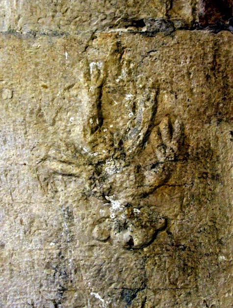 Sulla pietra di S. Maria della Strada il ragno ha la testa in basso, come se stesse scendendo, e le quattro estremità sono munite di mani a tre dita.