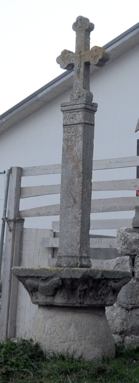 Comunque certamente la base è una pietra di riutilizzo proveniente da un frantoio in cui serviva da peso per la spremitura e la data 1872 potrebbe riferirsi anche al frantoio e non alla croce.