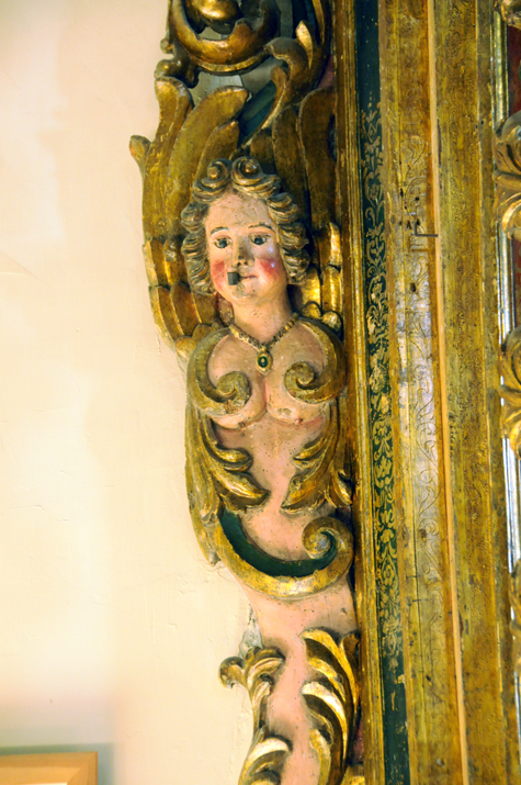 Sotto l’altare di S. Crescenzo (inizi XVIII secolo) nella chiesa di S. Francesco di Agnone la parte centrale di una decoratissima macchina lignea che nella sostanza è un grande reliquiario, la sirena è sostituita ad un putto che con le mani alzate si assume l’onere di costituire la base delle sovrastanti decorazioni. In questo caso la parte inferiore del personaggio è fatta da foglie di acanto che si risolvono in volute barocche sulle quali si appoggiano i rami vegetali che fuoriescono dalle spalle.