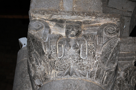 Su uno dei capitelli appare una sirena bicaudata che in maniera sfacciata mostra il sesso a chi guarda trattenendo con le mani le due code che in questo modo sono rivolte verso l’alto.