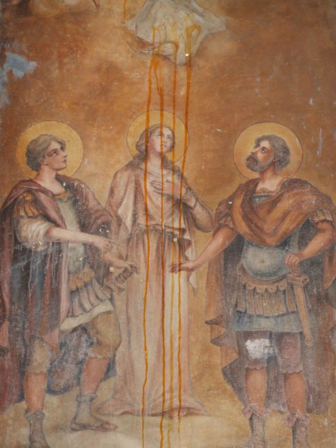 Era inevitabile che si sentissero in obbligo di fare un doppio saluto. Per cui, preso il cappello tra le mani, si giravano prima a sinistra facendo un inchino alla fila dei signori con l’augurale “Buon vespro” e poi si giravano a destra per rivolgere, con altrettanta devozione, un rapido saluto ai santi Nicandro, Marciano e Daria.