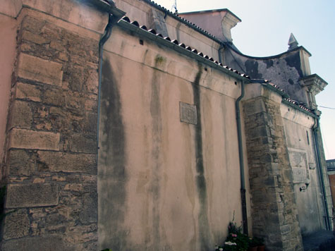 La parete laterale dell’Assunta di Miranda con lo stemma di Troiano di Somma del 1493
