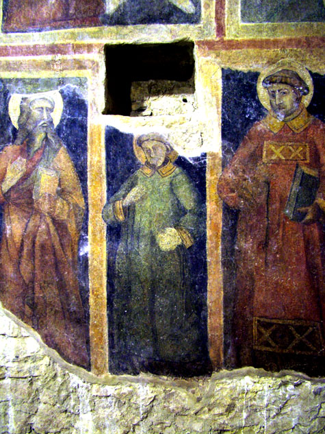 Nella cripta di Jelsi le figure dei santi Lorenzo e Stefano sono rappresentate in maniera essenziale in riquadri separati e nell’ambito di una più ampia iconostasi.