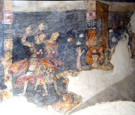 Particolare è la decorazione murale degli elementi di aggetto, costituita da spirali fitomorfiche terminate da turgidi boccioli derivate dalla tradizione classica, che ci richiamano le decorazioni miniate in uso per tutto il medioevo, come è il caso della figurazione della Natività sul frontespizio di un vangelo di Matteo del sec. XII.