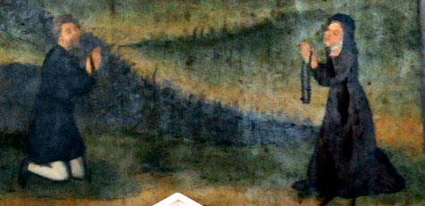 A destra due monaci, uno dei quali è S. Antonio di Padova ritratto con il giglio in mano.