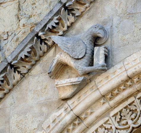 A distanza di un quarto di secolo la mia convinzione si è rafforzata e ancora di più appare utile evidenziare che ogni singolo particolare che costituisce l’apparato decorativo della cattedrale fa parte di un programma organico la cui interpretazione si lega direttamente ai significati simbolici riconducibili in maniera evidente alle interpretazioni apocalittiche di Giovanni l’Evangelista.
