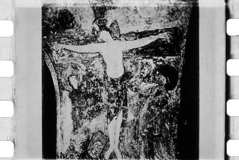 Dopo la ricognizione al palazzo tutti i convenuti si recano a visitare la cripta di Epifanio. Nel filmato viene proposta solo l’immagine della Crocifissione, forse ripresa da una pubblicazione.