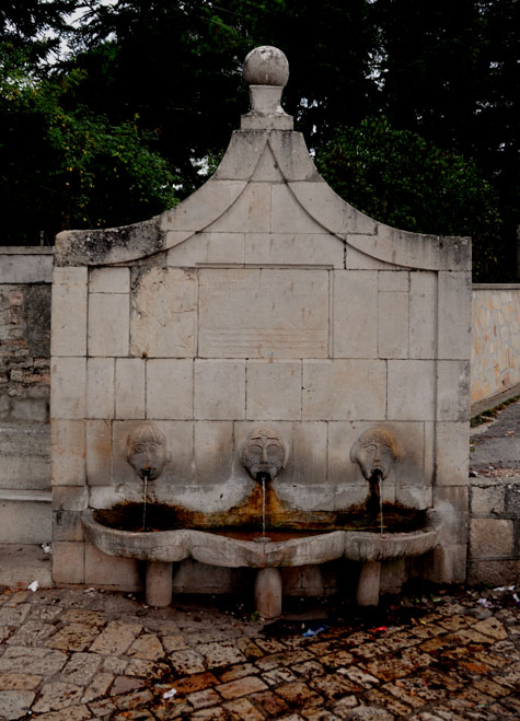 Facce di pietra sulla fontana alla Madonna del Carmelo di Riccia