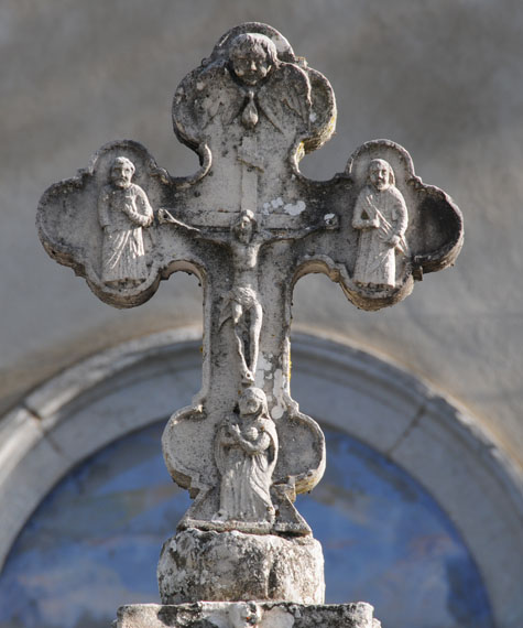 Davanti a questa chiesa si innalza una bella croce stazionaria che, come spesso accade, contiene insieme alle immagini consuete del Cristo, della Madonna e degli Apostoli, alcune figure di complicata interpretazione.