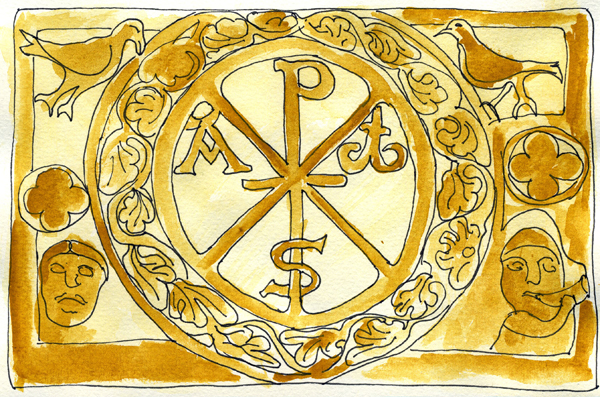 E’ noto che i due monogrammi siano le iniziali greche del nome di Gesù Cristo e che il secondo (XPS) sia stato preso come modello iconografico per una serie di rappresentazioni che hanno origine da un racconto particolare ripreso dalla tradizione letteraria di Lattanzio.