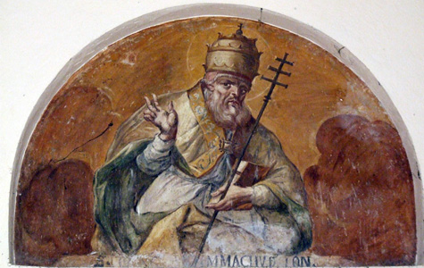 Simmaco ebbe un papato burrascoso per una serie di lotte interne e di contrasti con altre ali della Chiesa. Appare chiara, dall’operato di questo papa, la necessità di sistematizzare e razionalizzare il controllo del territorio attraverso una puntuale dislocazione delle sedi vescovili in tutto il territorio su cui esercitava il controllo spirituale. In assenza di fonti particolarmente esplicite, l’elencazione dei vescovi partecipanti ai Concili romani ed il riferimento per ogni vescovo alla città di provenienza, è sicuramente utile per definire la mappa della organizzazione ecclesiastica con la dislocazione dei diretti collaboratori del successore di Pietro.