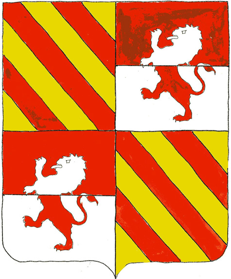 Il blasone più conosciuto dei d’Aquino è quello composto da tre bande di rosso in campo di oro, inquartato con l’arme ancora più antica dei Summucula, costituita da un campo troncato di rosso e d’argento con un leone rampante di argento e di rosso.