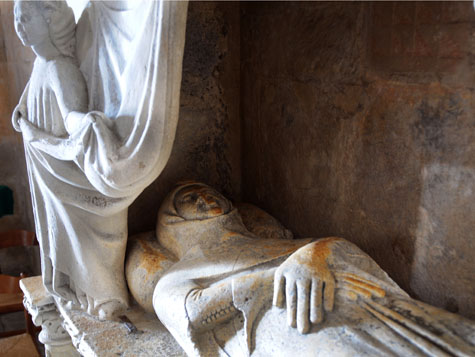 Un personaggio i cui eredi, per una incomprensibile motivazione, non fecero completare l’epitaffio che il lapicida aveva cominciato a scrivere sul bordo della pietra di copertura del baldacchino.