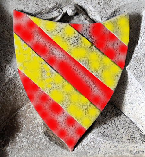 In effetti lo stemma più antico dei d’Aquino è quello delle tre bande di rosso in campo di oro, come quello dell’arca di S. Maria della Strada, anche se i colori mancano e il campo di oro è sostituito da tre bande in rilievo.