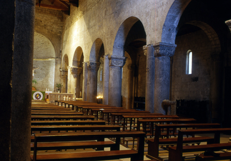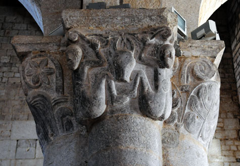 Tra le cose particolarmente meritevoli di osservazione vi sono i capitelli del suo colonnato interno ed in particolare il penultimo della navata di destra che mostra due strani personaggi aggrappati ad una corda.