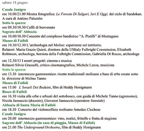Un ricco programma non mancherà di interessare cultori ed amanti di cinema, di musica, di cose storiche, di bellezze naturali e di gastronomia.