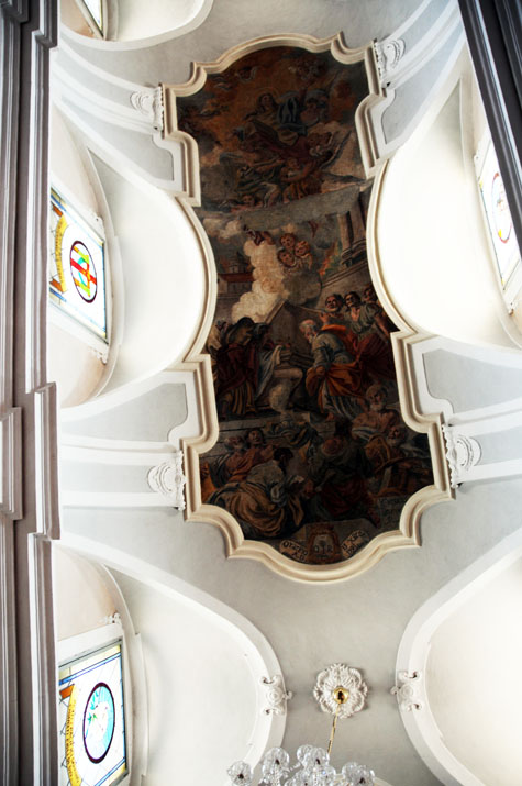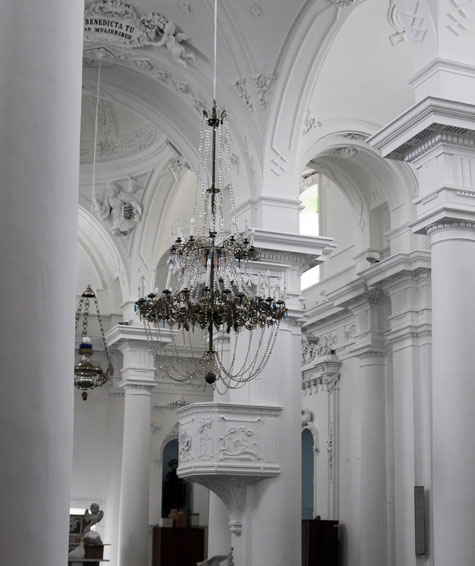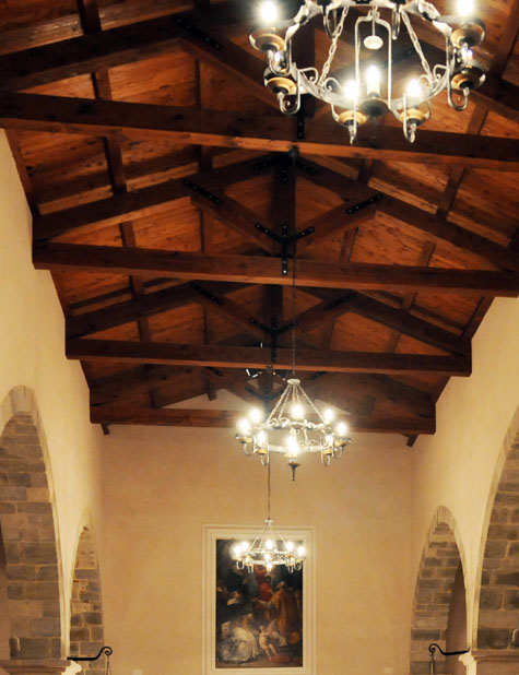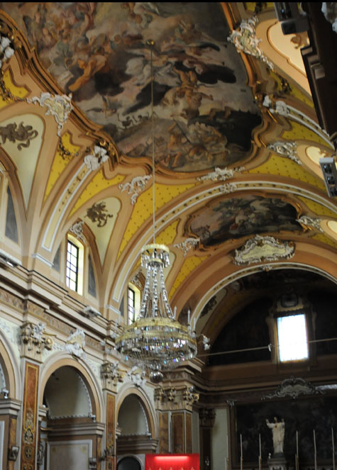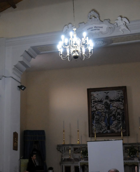 Io sono convinto che i lampadari non danno fastidio al grande affresco di Brunetti. Ma è una mia opinione.
