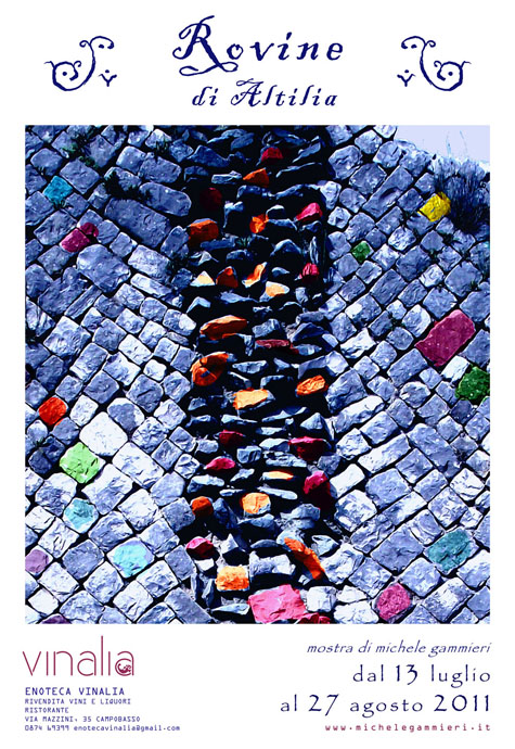 Michele Gammieri, mercoledì 13 luglio, alle 19,00 presso l’Enoteca Vinalia in via Mazzini 35 a Campobasso, apre la mostra “Rovine di Altilia”. Graditissima la vostra presenza.