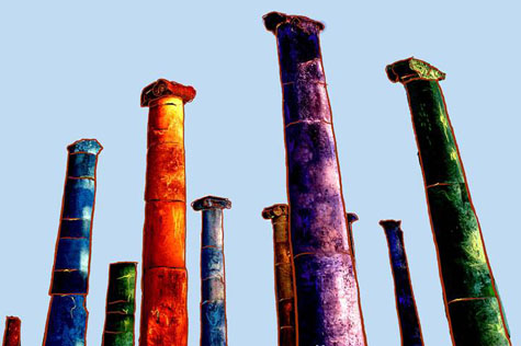 Le rovine di Altilia per Michele Gammieri sono l’occasione per far esplodere quella luce e quei colori che i reperti archeologici, spesso confinati nell’ambito di una cultura per pochi eletti, conservano gelosamente solo per chi ha gli occhi per vederli.