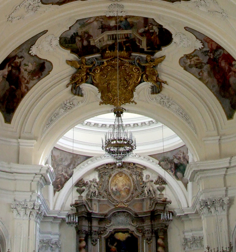 Trasformata sostanzialmente nel 1616 su disegni di grandi architetti della scuola di Cosimo Fanzago (la bella cupola lo testimonia) assunse la forma attuale nel 1756 quando i decoratori milanesi Tersini e De Lorenzi completarono l’apparato architettonico entro il quale Paulo Sperduti realizzò il grande programma pittorico delle storie di Maria Madre di Dio.