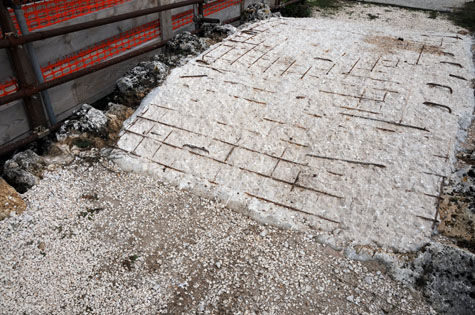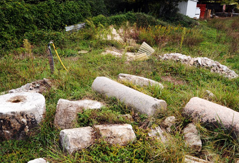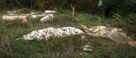 Una discarica di plastica e residui cementizi in mezzo alle colonne!