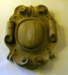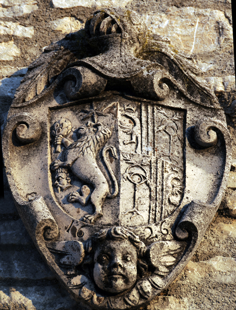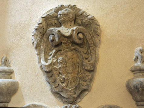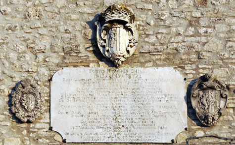 Il secondo è lo stemma della sua famiglia partito con quello dei d’Evoli posto al disopra della lapide.