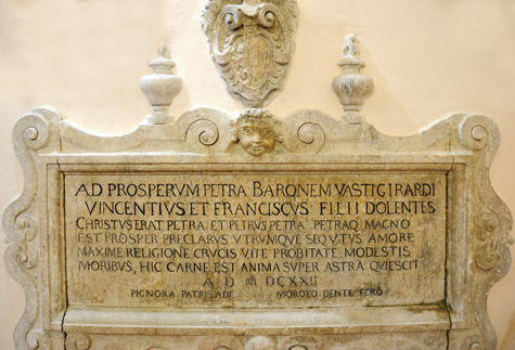 I filii dolentes di Prospero, barone di Vastogiradi, vi avevano fatto seppellire il genitore nel 1622 e nell’epigrafe associarono il proprio nome a quello di Cristo che erat petra et Petrus petra petraque…