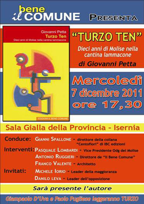 Mercoledì 7 dicembre 2011, alle ore 17,30, la sala gialla della Provincia di Isernia non sarà sufficientemente capiente per ospitare quanti verranno a salutare Rossano Turzo che presenta la sua impareggiabile opera letteraria:
