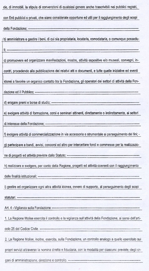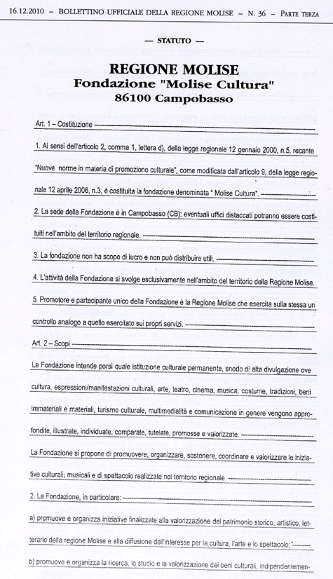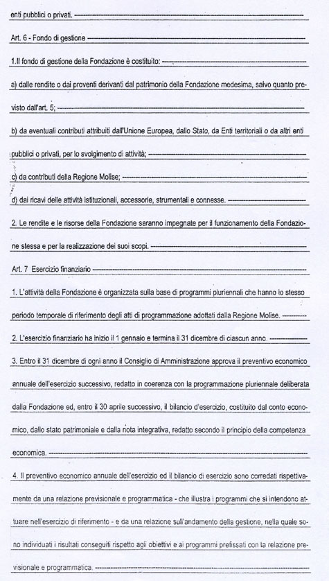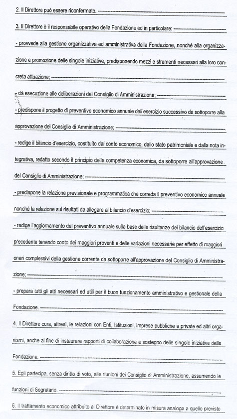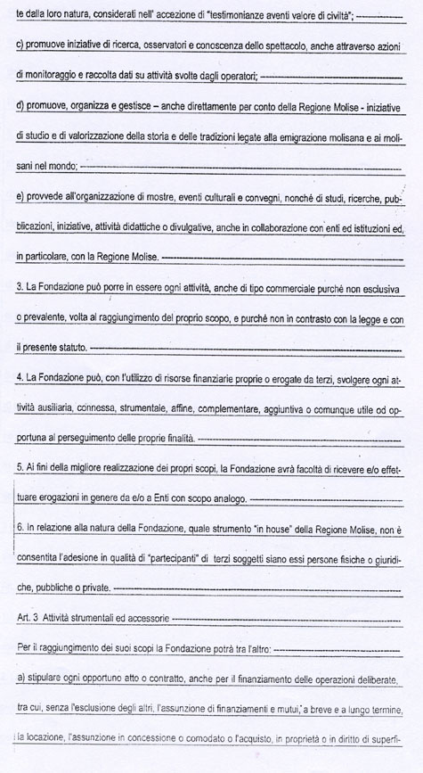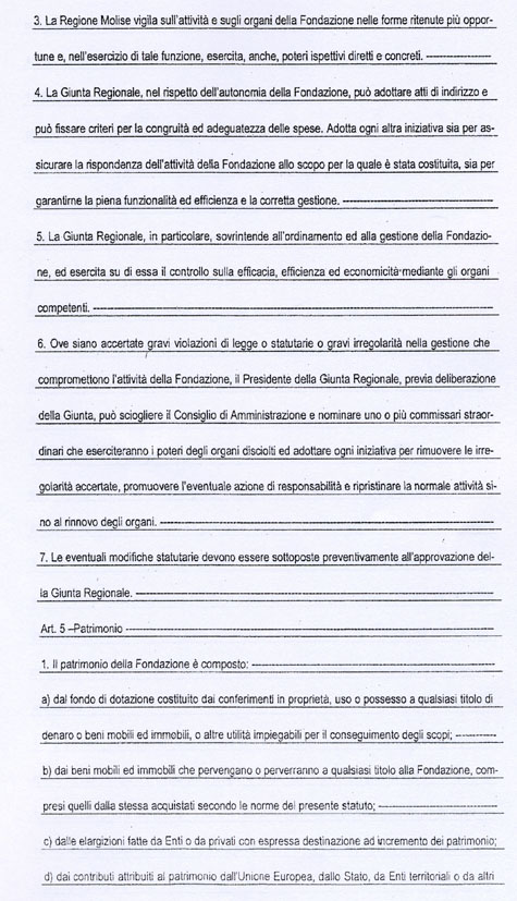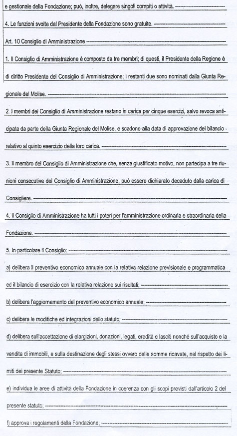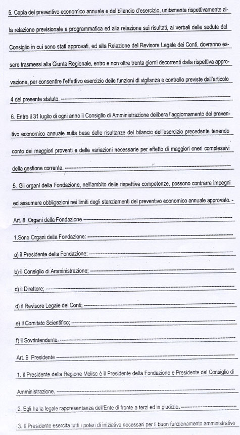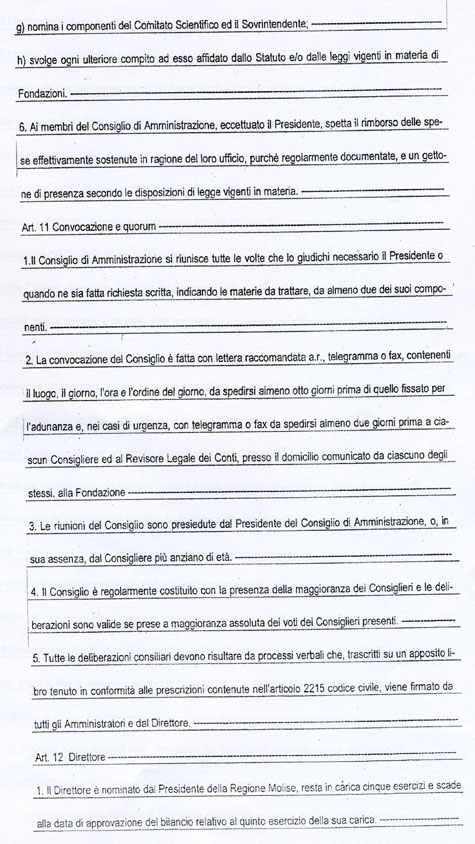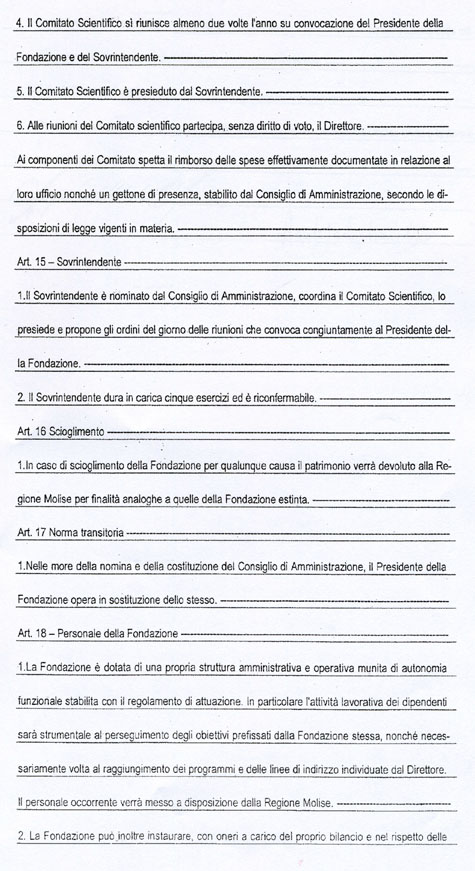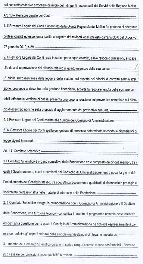 L’art. 18 dello Statuto della Fondazione MOLISE CULTURA, come potrete vedere dalla copia integrale che allego, recita tutt’altra cosa. Potrebbe trattarsi di un errore di trascrizione del numero dell’articolo, ma l’art. 18 richiamato non dice nulla circa la nomina del Direttore Generale.