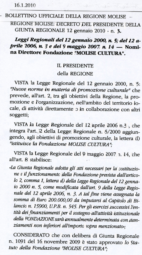 Fondazione Molise Cultura: Le incongruenze di un decreto di nomina del Direttore