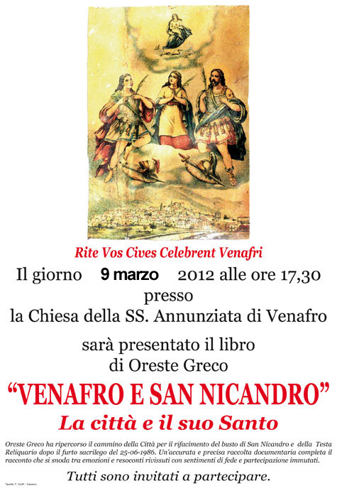 9 marzo 2012. Chiesa dell’Annunziata. “Venafro e San Nicandro – La Città e il suo Santo” di Oreste Greco