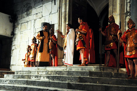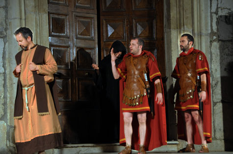 CAPITANO – Voi Cristiani?!  Voi nemici de’ nostri Dei, delle nostre leggi!  Voi ribelli del Romano Impero!