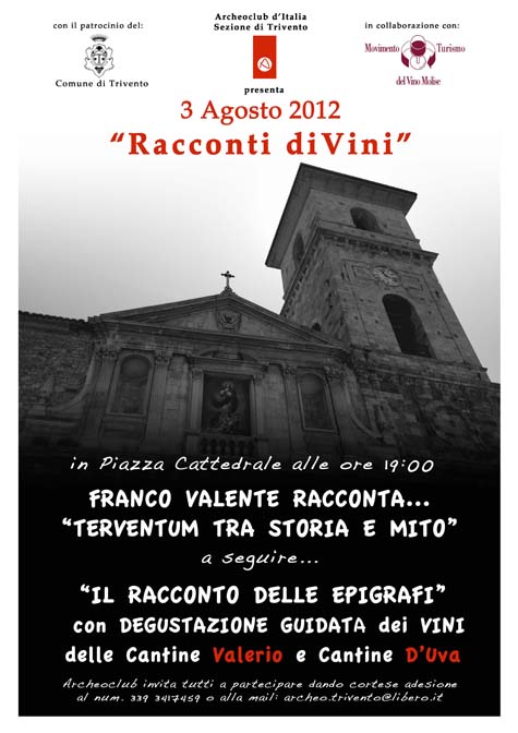 e a seguire “il racconto delle epigrafi a cura dell’Archeoclub di Trivento, con degustazione dei vini delle cantine Valerio e D’Uva.