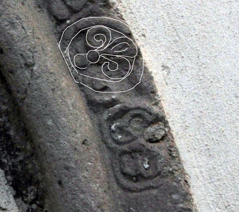 Ci vengono incontro, innanzitutto, i due piccoli ornamenti che seguono l’ultima lettera dell’epigrafe. Sembrano, in maniera superficiale, due semplici palmette floreali, ma se si osserva più attentamente la prima, sebbene sia piuttosto rovinata, pare possa trattarsi di un giglio.