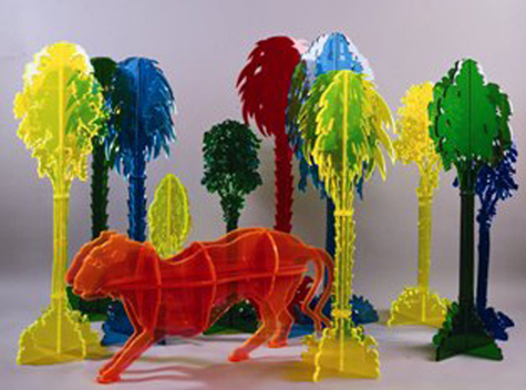 Con tecniche d’avanguardia, i metacrilati, materiali apparentemente freddi, l’Artista è riuscito a creare opere d’arte che spaziano da alberi fantastici a animali esotici, formando un Eden psichedelico di grande spessore artistico