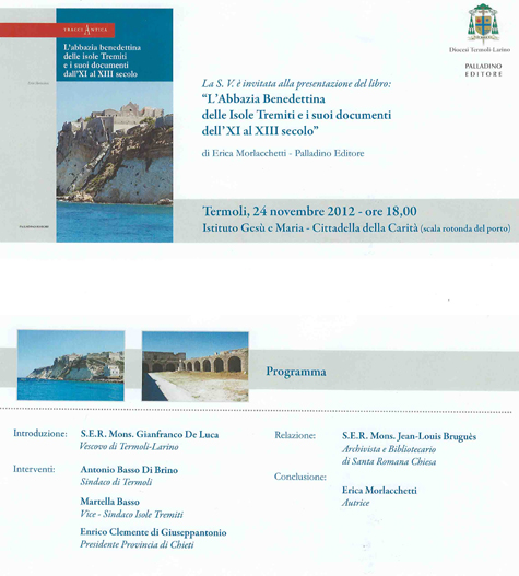 Erica Morlacchetti: L’abbazia benedettina delle isole Tremiti e i suoi documenti dall’XI al XIII secolo