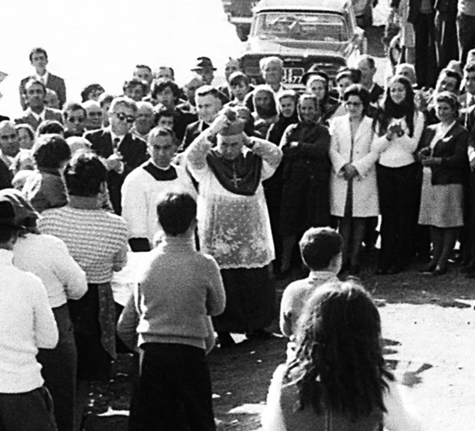 Si riconoscono, insieme alla piccola popolazione di Ceppagna, il presidente della Provincia don Peppino Vitagliano, il vice-sindaco Domenico Cotugno, l’assessore Antonio Verrecchia, l’assessore Mario Ricci, il consigliere Pietro Biondi, il consigliere Domenico Cuzzone, l’on. Giulio Vecchiarelli, Giustino D’Uva, Natalino Paone, Paolo Nuvoli, Ettore Rufo, il vescovo Achille Palmerini, don Mario Lago e don Virgilio, mitico parroco di Ceppagna.