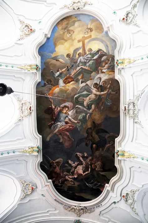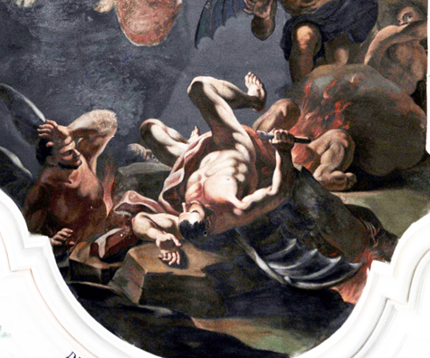 Nella chiesa di S. Francesco Paolo Gamba ha eseguito il meglio della sua produzione, a cominciare dalla grandiosa Caduta degli angeli ribelli, passando per le figure delle Virtù, dei Profeti, degli Evangelisti e delle scene bibliche di Achimelech che dona il pane a re Davide oltre la rappresentazione della morte di S. Francesco.