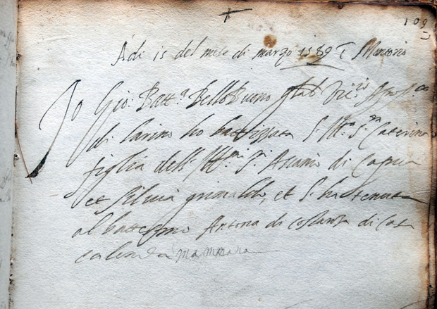L’atto di battesimo di Caterina di Capua (1589)
