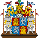 Nella prima partitura è inquartato, nel 1° e nel 4° con un leone alato illeopardito in verticale; nel 2° e nel 3° sembra un castello di 3 torri con quella centrale scaccata.  La seconda partitura è di oro alla banda di argento gemellata di nero.