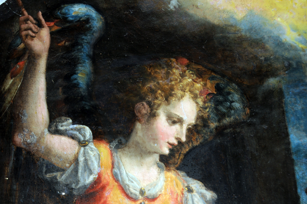 Sono convinto che la presenza di questa pittura in Venafro debba comunque mettersi in relazione con un altro quadro che nella seconda metà del Cinquecento era stato commissionato dai Cappuccini a Teodoro D’Errico per essere collocato nella chiesa di S. Nicandro. Anche di questo quadro e del contesto storico ho già parlato. (http://www.francovalente.it/2010/02/02/teodoro-d%E2%80%99errico-il-contesto-politico-e-religioso-del-regno-di-napoli-tra-il-1561-e-il-1580-seconda-parte/).