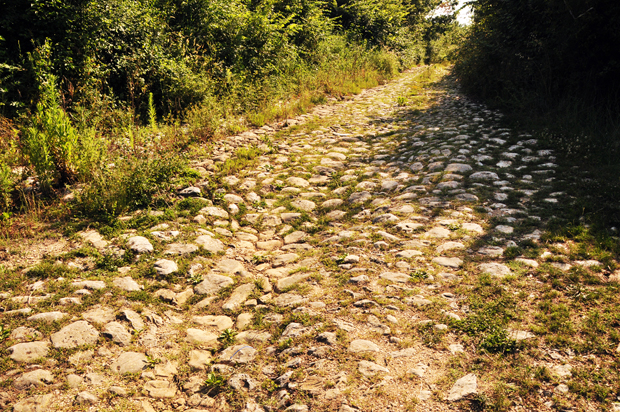 Il basolato dell’antica strada che rischia di essere smantellato per essere sostituito dall’asfalto.