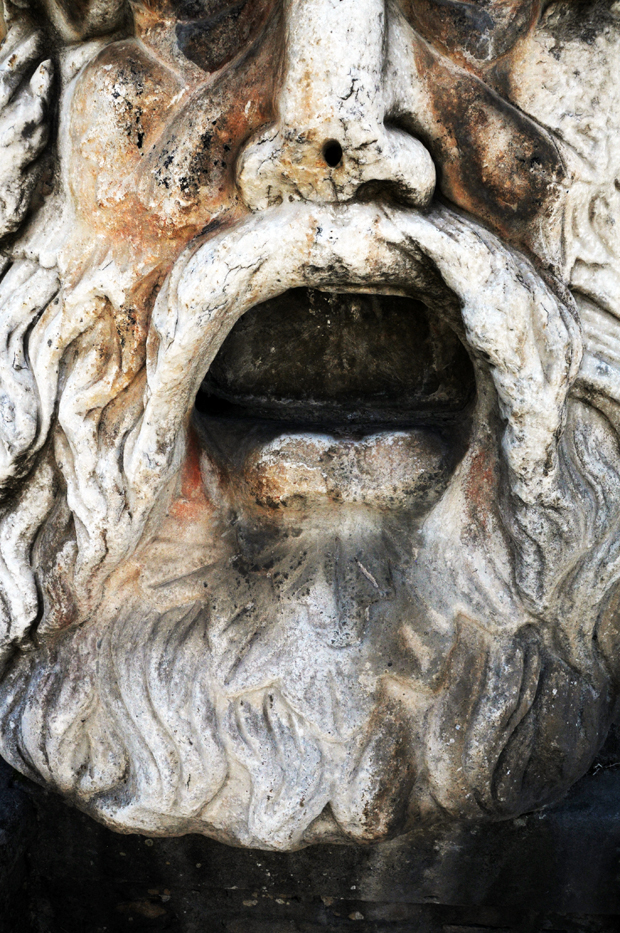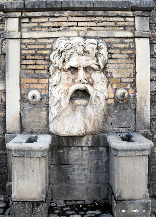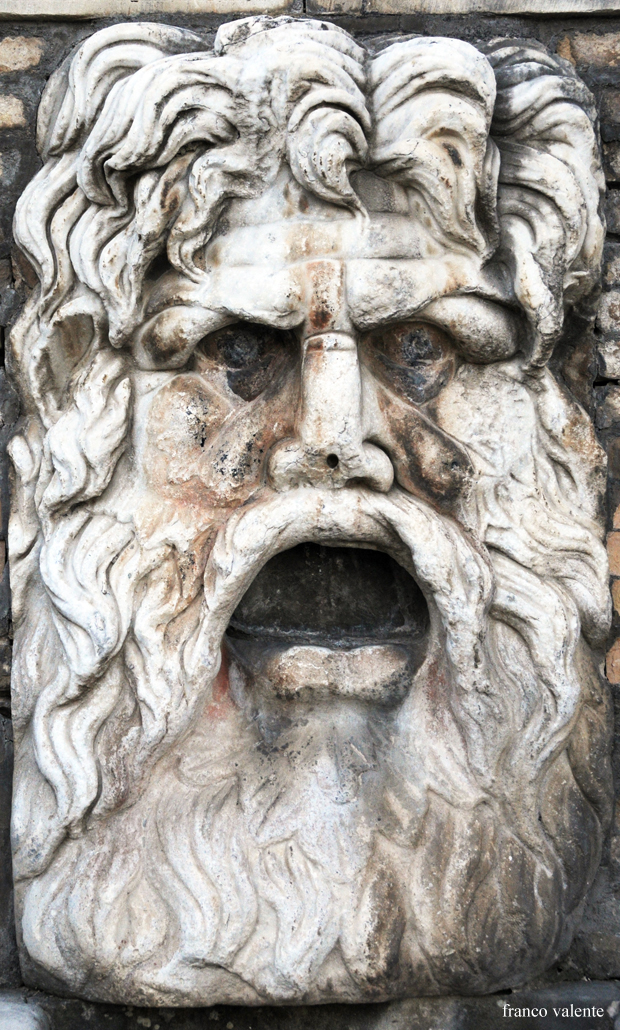 E’ evidente che in origine il mascherone fosse la protome di un getto di acqua di una certa consistenza. Molto più di una semplice fontana. La dimensione non lascia dubbi che facesse parte di un complesso idraulico importante e che avesse un significato legato alla particolare necessità di attribuire un valore cosmico a quel luogo.