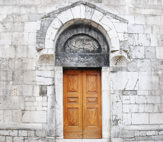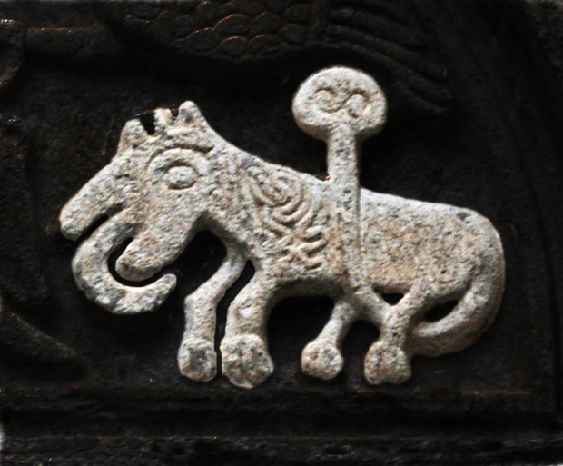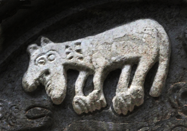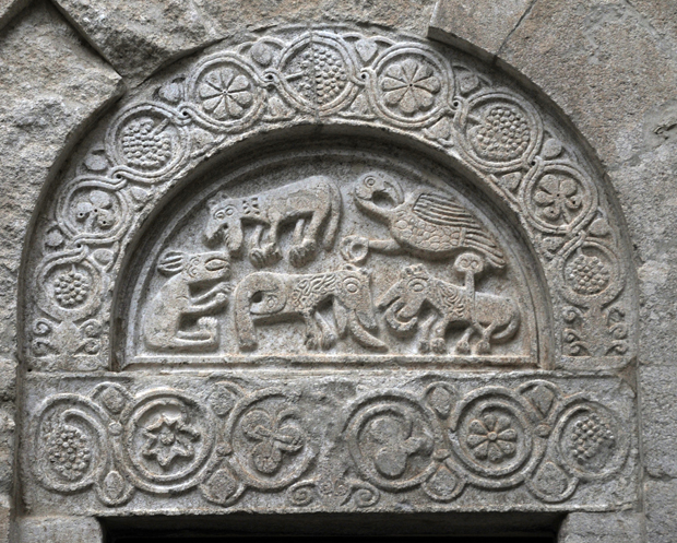 Nella lunetta monolitica appaiono 5 animali fantastici.