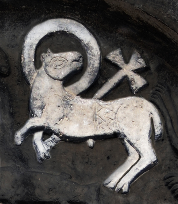 Nell’iconografia cristiana l’agnello è consueto fin dai primi secoli e si trova ripetutamente in rappresentazioni funerarie. Con la croce lo vediamo diffuso nell’arte bizantina di Ravenna ed è nota la croce gemmata di Giustino II (565-578) conservata nel Tesoro di S. Pietro dove l’agnello sostituisce esplicitamente il Cristo sulla croce.