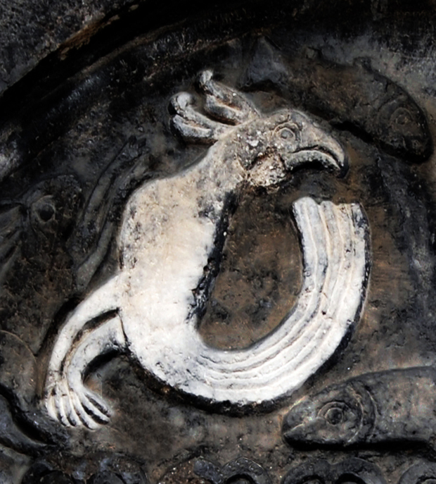 Non è importante capire se si tratti di invenzioni fantasiose o interpretazioni surreali di animali realmente esistiti. Sicuramente l’uccello è un rapace.